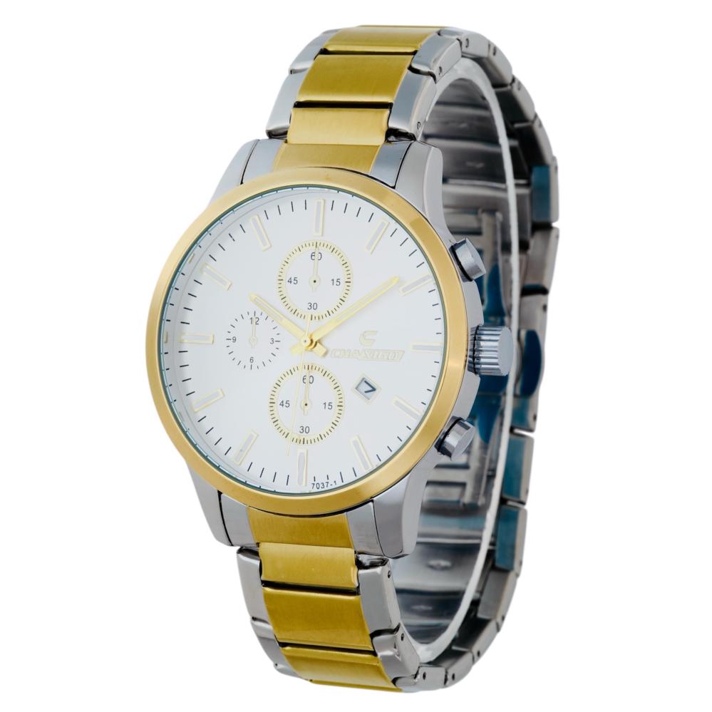 ساعة رجالية بسير ستيل بلون فضي وذهبي